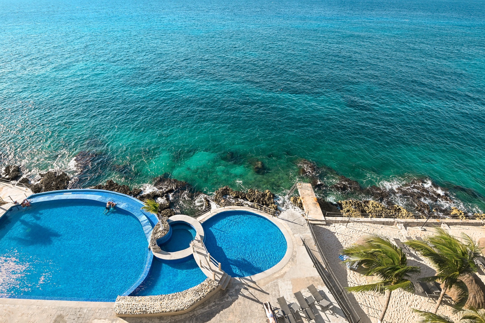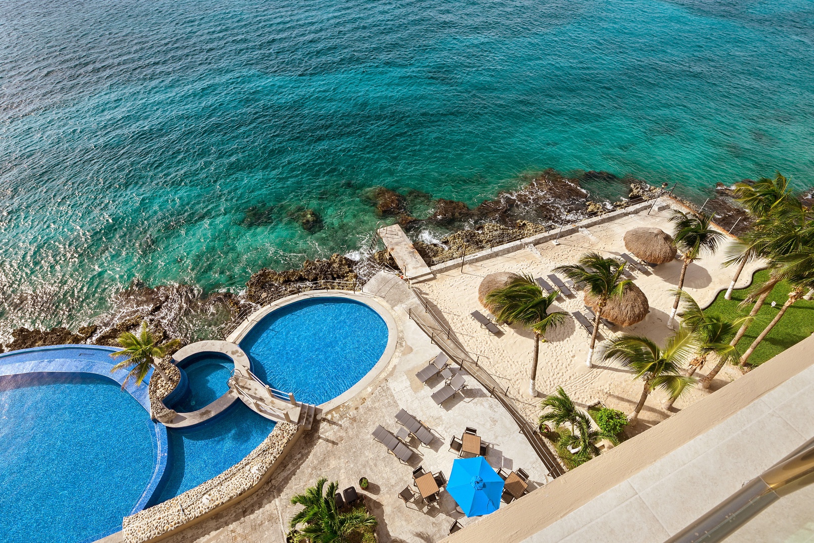 In a great location, this beachfront condo is perfect if you want to be close to town and yet right at the water's edge. With steps leading right into the ocean, you can snorkel the reef to your heart's content. There's also an infinity pool and shallow pool for the kids. El Cantil is literally across the street from a major grocery store and a cinema, and you're only steps away from a shopping center with Starbucks and other cafes and restaurants. The ferry dock is about a 20-minute walk, and taxis are plentiful here. All the dive operators on the Island pick-up and deliver right to your dock.