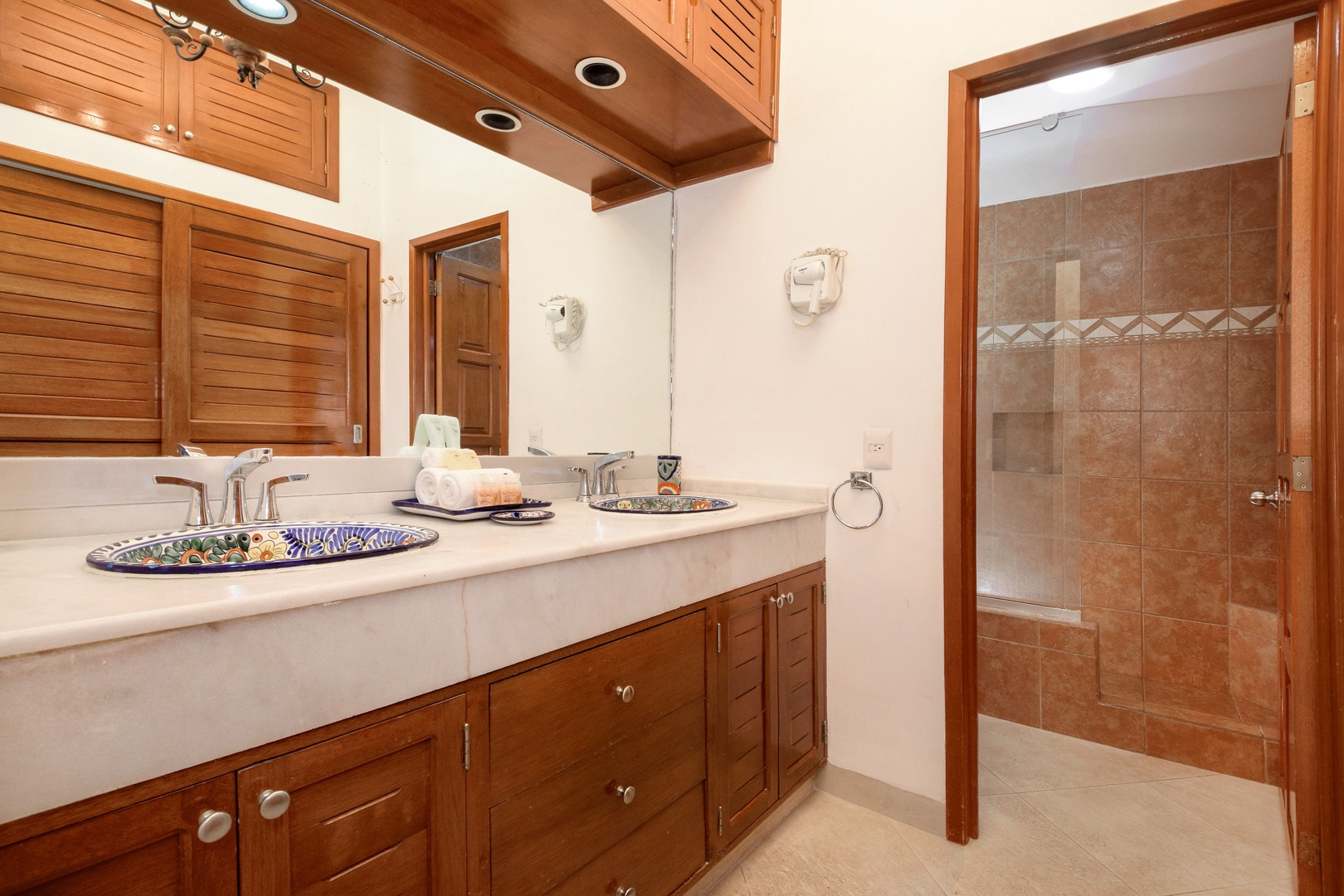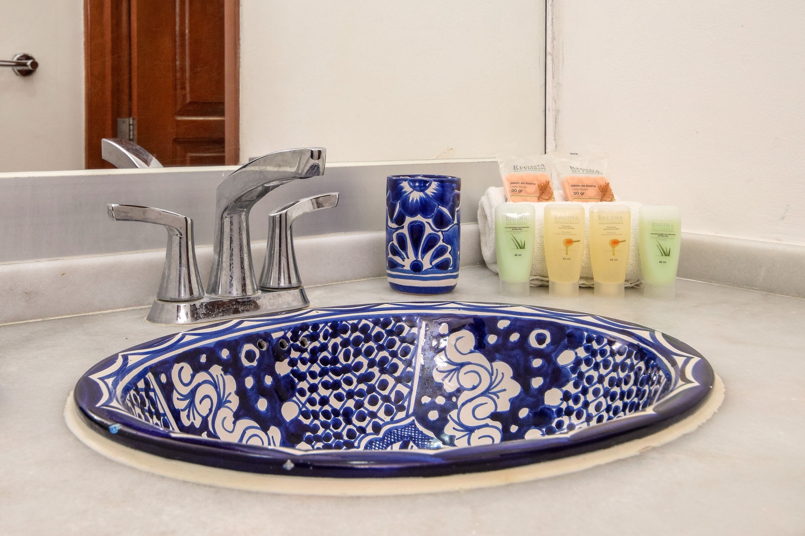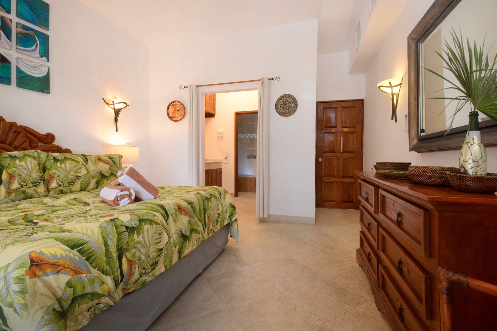 Indulge in the ultimate relaxation in the master suite, where wall-to-wall windows and terrace access offer breathtaking ocean views. Awaken to the sight of the tropical sun rising over the sea, then pamper yourself in the newly-renovated master bathroom, complete with vibrant hand-painted ceramic sinks and a rejuvenating shower.