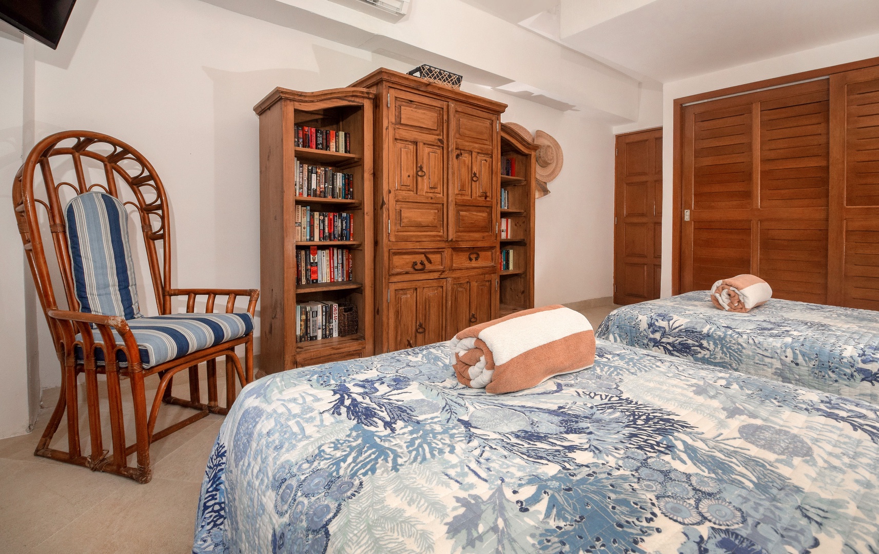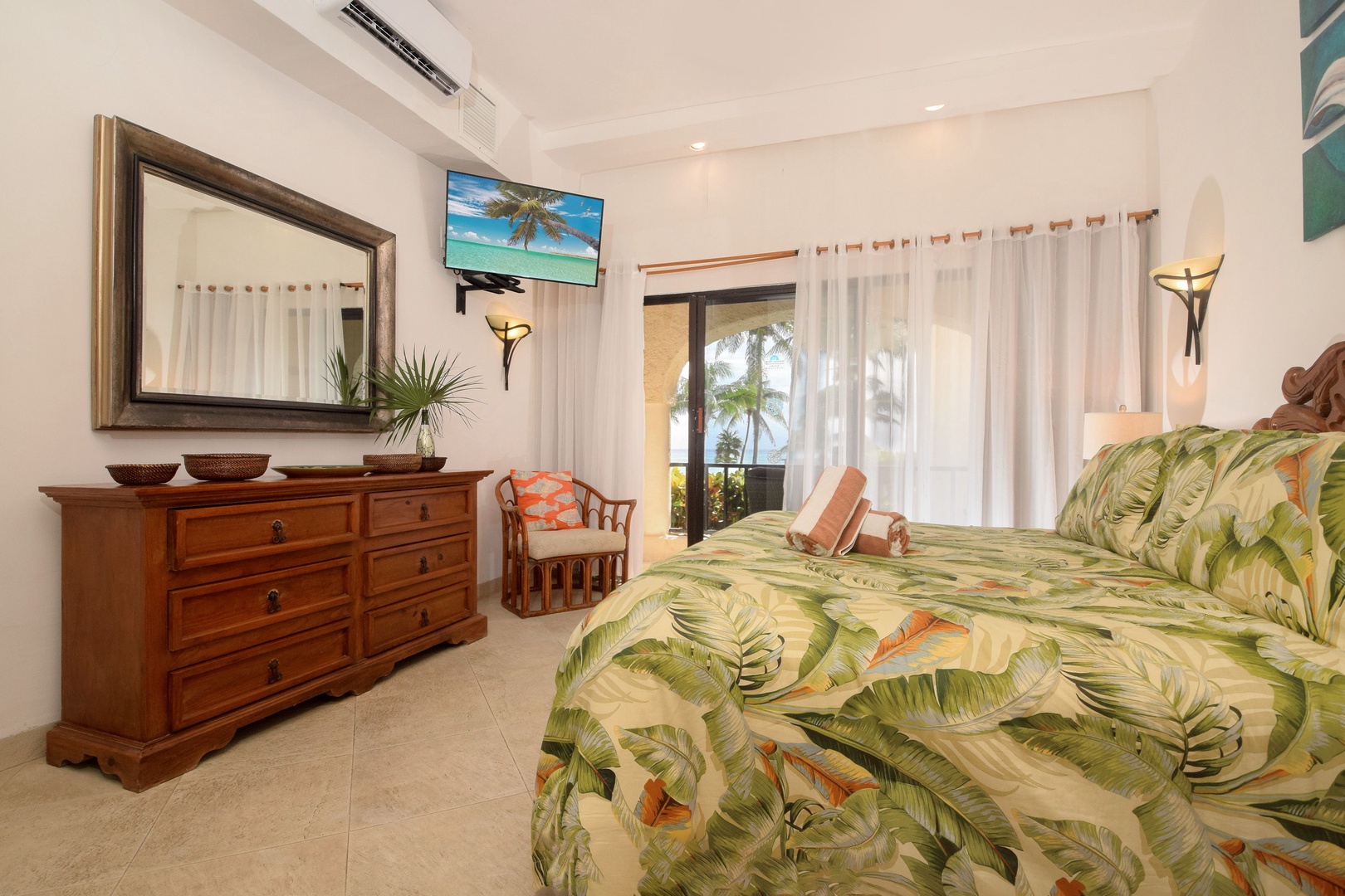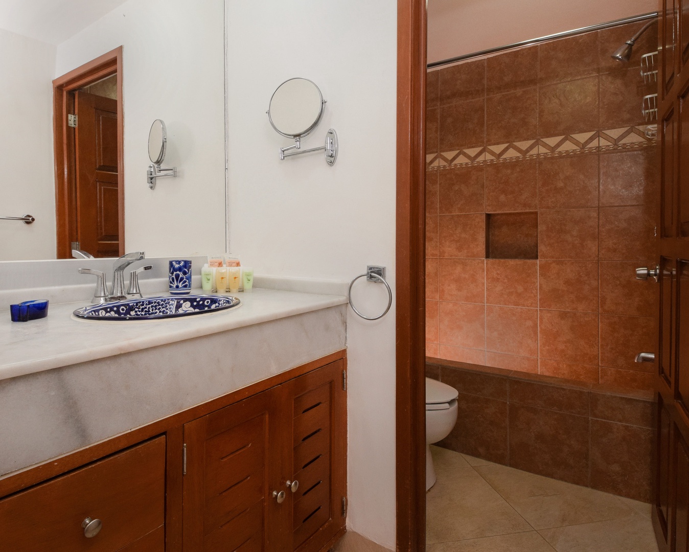 Indulge in the ultimate relaxation in the master suite, where wall-to-wall windows and terrace access offer breathtaking ocean views. Awaken to the sight of the tropical sun rising over the sea, then pamper yourself in the newly-renovated master bathroom, complete with vibrant hand-painted ceramic sinks and a rejuvenating shower.